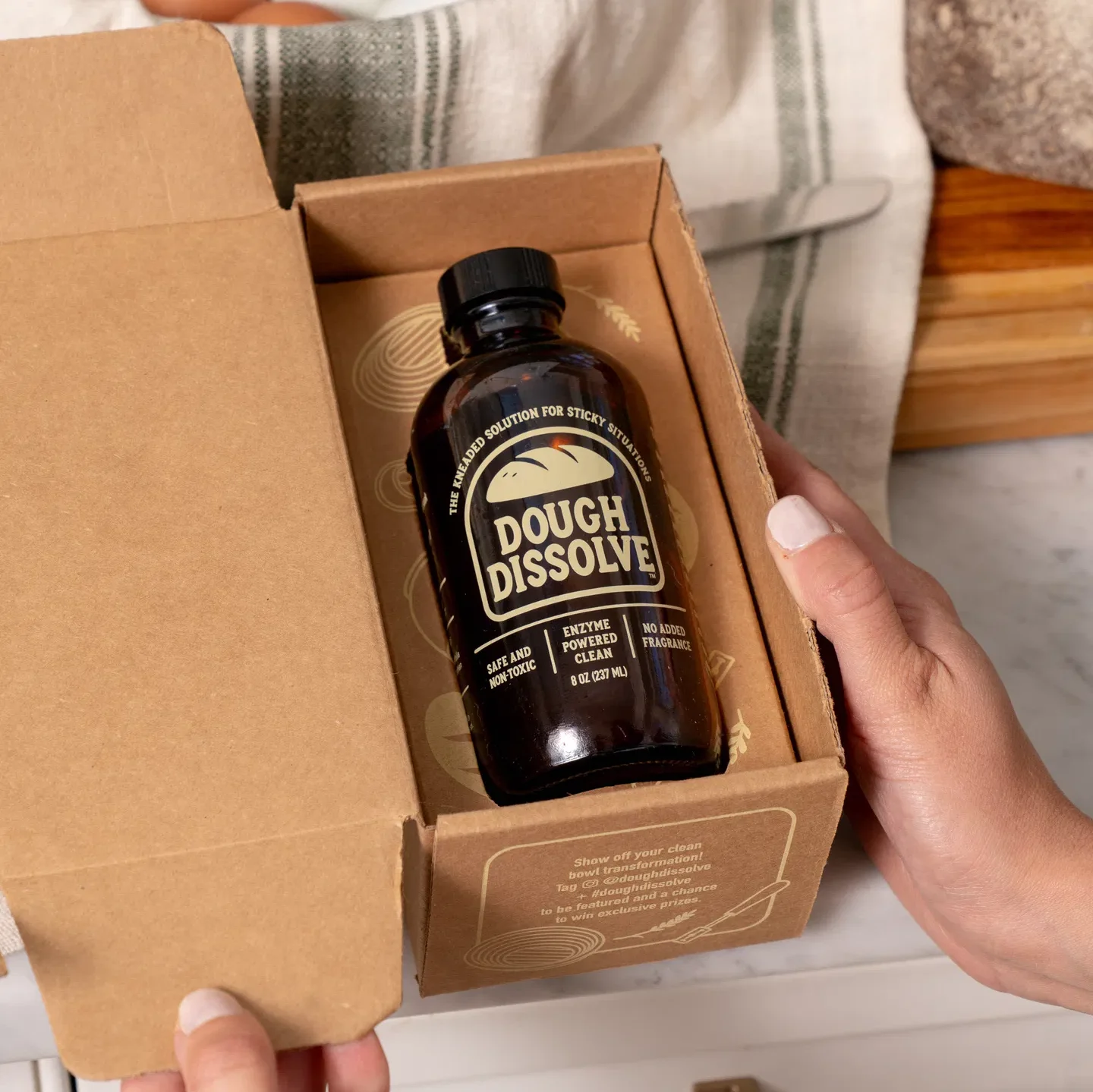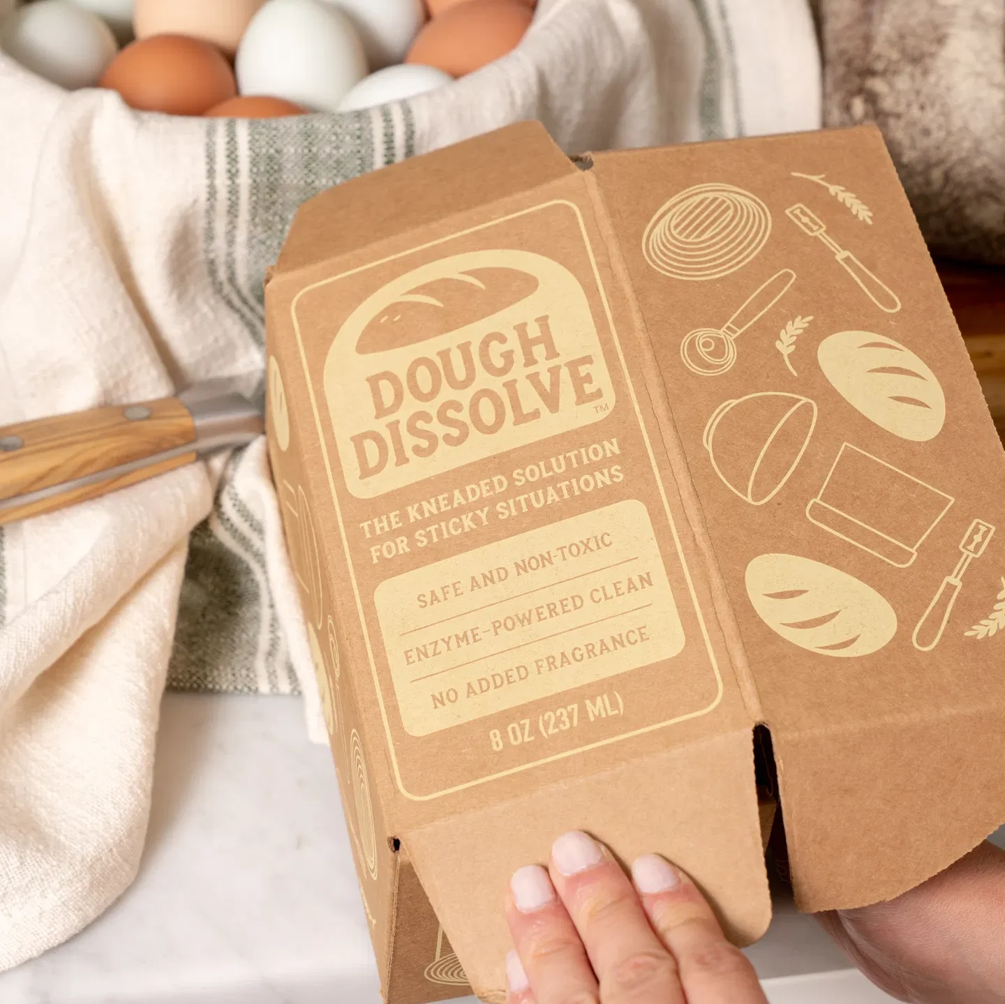 The Dough Dissolve formula is a non-toxic sticky dough solution that has never been tested on animals, which matters when you’re using something around food prep areas. It’s also made with a sustainable formulation that uses minimal plastic packaging—a nice touch when you’re already trying to be thoughtful about the products you bring into your kitchen.