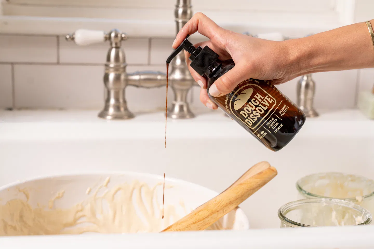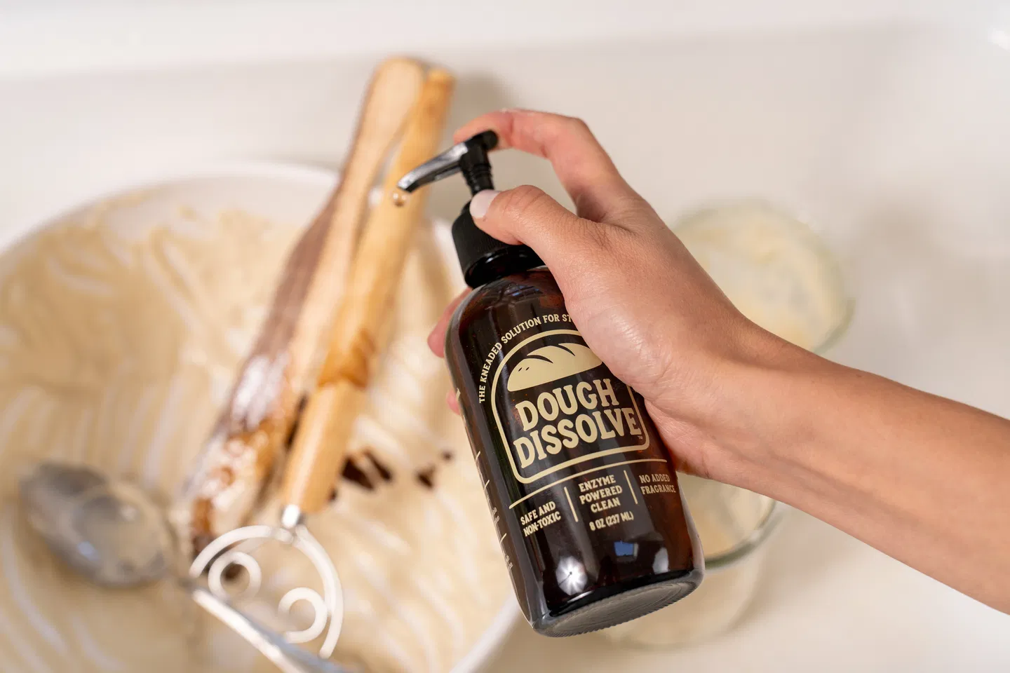 Instead of scrubbing until your hands hurt or pushing dough down the drain (hello, plumbing bills), you just add water to Dough Dissolve, let it sit for a bit, and watch it easily remove sticky residue on its own. It works on everything—bowls, jars, utensils, countertops, even your drains. And it’s gentle on your hands while being tough on the mess, which is a combo that’s harder to find than you might think.
